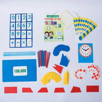 - Bộ hình học phẳng gồm có : (Hình tam giác đều :6 cái , hình tam giác cân: 4 cái , hình tam giác nhọn 40*60:2 cái , hình tròn:8 cái , hình vuông :10 cái , hình chữ nhật :2 cái , hình tứ giác: 4 cái).